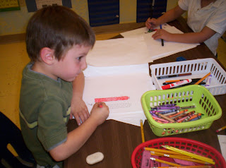 This week we have been creating individual counting books for the numbers 0 through 12. So much counting occurs when you're creating....count out the stickers, count the cubes to color, sort your pages from 0 to 12, and look for missing pages. We hope to read our books to the PreK class when they are complete. We continue with our yes no questions for attendance ("are you the oldest child in your family?" is difficult and involves some discussion, as some children are the ONLY child in their family). We also complete the counting jar activity each day.